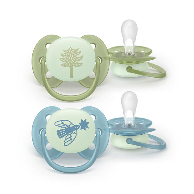 Philips Avent Ultra Soft Nighttime Glow in the Dark fopspeen - +18 maanden - olijf/blauw - 80% plantaardig - 2 stuks - SCF094/05